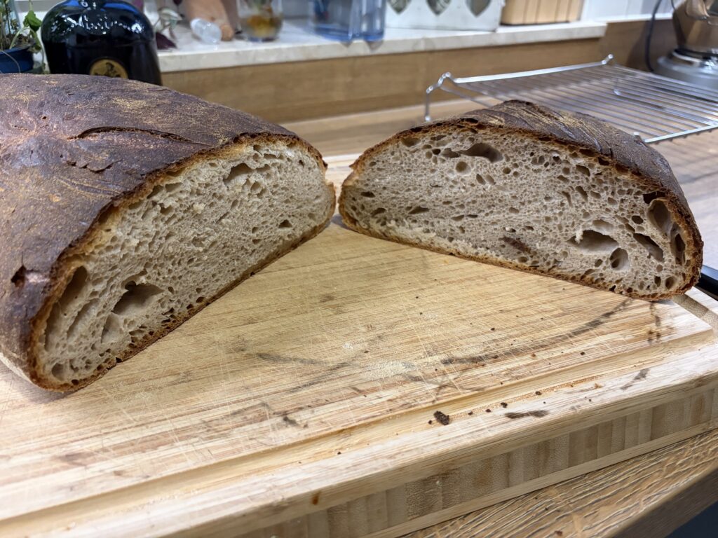 In meiner Variante des Sylter Weißbrots wird das Altbrot als separates Quellstück mit Salz und kochendem Wasser vorbereitet. Dadurch kann es vollständig hydratisieren, was zu einer saftigeren Krume und besserer Frischhaltung führt. Die lange Vorteigführung von bis zu 24 Stunden sorgt zudem für ein besonders komplexes Aroma und eine lockere Porung – und macht die Zeitplanung einfacher, da sich die Vorbereitung bequem nach der Arbeit erledigen lässt.